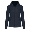 85% coton biologique / 15% polyester recyclé post-consumer. Surface extérieure 100% coton peigné. Molleton gratté 3 fils LSF (Low Shrinkage Fleece). Lavage aux enzymes. Coupe droite. Poches kangourou. Fermeture zippée nylon ton sur ton. Capuche doublée 100% coton, coton jersey 180g. Bord-côte 1x1 montage tubulaire pour une meilleure finition au bas de manches et de vêtement. Bande de propreté jersey ton sur ton et finition demi-lune intérieur col. Finition double aiguilles sur bas de manches, bas de vêtement et col. Pas d'étiquette de marque au col, juste une puce de taille pour faciliter la personnalisation.