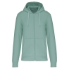 85% coton biologique / 15% polyester recyclé post-consumer. Surface extérieure 100% coton peigné. Molleton gratté 3 fils LSF (Low Shrinkage Fleece). Lavage aux enzymes. Coupe droite. Poches kangourou. Fermeture zippée nylon ton sur ton. Capuche doublée 100% coton, coton jersey 180g. Bord-côte 1x1 montage tubulaire pour une meilleure finition au bas de manches et de vêtement. Bande de propreté jersey ton sur ton et finition demi-lune intérieur col. Finition double aiguilles sur bas de manches, bas de vêtement et col. Pas d'étiquette de marque au col, juste une puce de taille pour faciliter la personnalisation.