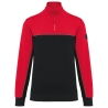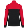 60% coton / 40% polyester recyclé. Molleton gratté 3 fils LSF (Low Shrinkage Fleece). Coupe ajustée. Manches montées. Col avec zip plastique et tire-zip ton sur ton recyclé. Bande de propreté contrastée en chevron. Finition demi-lune encolure dos pour faciliter la personnalisation de marque à l'intérieur. Passepoil contrasté entre les parties du vêtement bicolores (corps et manches devant et dos). Bord-côte 1x1 au bas de manche et de vêtement. Porte-stylo élastiqué 3 compartiments sur la manche gauche au porter. Etiquette de marque Tear Away.