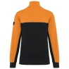60% coton / 40% polyester recyclé. Molleton gratté 3 fils LSF (Low Shrinkage Fleece). Coupe ajustée. Manches montées. Col avec zip plastique et tire-zip ton sur ton recyclé. Bande de propreté contrastée en chevron. Finition demi-lune encolure dos pour faciliter la personnalisation de marque à l'intérieur. Passepoil contrasté entre les parties du vêtement bicolores (corps et manches devant et dos). Bord-côte 1x1 au bas de manche et de vêtement. Porte-stylo élastiqué 3 compartiments sur la manche gauche au porter. Etiquette de marque Tear Away.