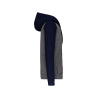 65% polyester / 35% coton. Molleton gratté. Fermeture zippée. Manches raglan et capuche contrastées. Capuche doublée en maille filet ton sur ton. Poches kangourou avec poche téléphone fluorescente. Passe-fil écouteurs. Poignets et bas de vêtement en bord-côte double épaisseur 2x2.