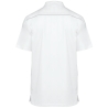 65% polyester / 35% coton. Tissu twill polycoton. Lavage à 60°C. Coupe ajustée. Col mao. Fermeture avant avec boutons pression. 1 poche poitrine plaquée côté cœur avec compartiment stylo. 2 grandes poches plaquées avant dont une (à gauche) à double compartiments (poche intérieure à bord contrasté). Passepoil contrasté sur la patte de fermeture et sur l'empiècement dos. 2 fentes d'aisance latérales. Etiquette nom à l'intérieur du vêtement. Etiquette de marque Tear-away.