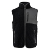 Bodywarmer polaire sherpa bicolore. Tissu contrasté poitrine et passepoil sur le bord des coutures. Poche poitrine et poches latérales zippées.