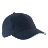 100% coton sergé brossé épais. Visière préformée. Tranche de la visière de couleur contrastée. Fermeture arrière réglable par boucle métallique argent + passant. *3 coloris avec contraste supplémentaire sous la visière.