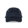 100% coton sergé. Panneau frontal pour faciliter la personnalisation. Tranche de la visière de couleur contrastée. Fermeture arrière réglable par boucle métallique.