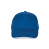 100% coton sergé brossé épais. 5 panneaux. Sandwich contrasté. Bande de transpiration doublée en coton. Fermeture arrière réglable par boucle métallique.