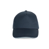 100% coton sergé. Casquette 5 panneaux avec sandwich contrasté, bande de transpiration en coton. Fermeture réglable avec bande auto-agrippante.