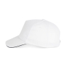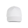 100% coton sergé. Casquette 5 panneaux avec sandwich contrasté, bande de transpiration en coton. Fermeture réglable avec bande auto-agrippante.