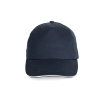 100% coton sergé. Casquette 5 panneaux avec sandwich contrasté, bande de transpiration en coton. Fermeture réglable avec bande auto-agrippante.