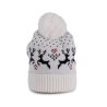 100% acrylique, bord 100% polyester. Bonnet aux motifs fantaisie rennes.