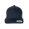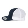 60% coton / 40% polyester. 6 panneaux. Modèle Trucker rétro de haute qualité avec visière mi-profil et panneaux avants rigidifiés de même couleur. Languette de règlage en plastique.