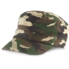 100% coton twill. Style militaire avec motif camouflage. Quadruple surpiqûre sur la visière préformée, courte et arrondie. Œillets surpiqués. Fermeture arrière réglable par boucle métallique. Convient pour la broderie.
