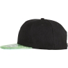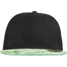 100% acrylique sergé. Casquette Snapback 6 panneaux. Visière contrastée plate en PU à effet nacré. Œillets brodés. Panneaux frontaux renforcés. Languette de réglage Snapback. Étiquette détachable. Convient pour la broderie et le transfert numérique.