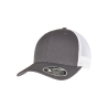74% polyester / 26% coton. Casquette trucker bicolore au design intemporel. Avant en coton et arrière en maille de polyester. Ajustable grâce à la technologie Flexfit et fermeture snapback. Surpiqûres à 8 rangs sur la visière et dessous de visière couleur silver.
