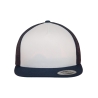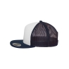 60% coton / 40% polyester ( filet 100% polyester). Design camionneur authentique avec une partie avant blanche continue, une partie arrière en maillage et une visière contrastante.