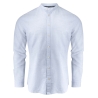 Chemise en coton/lin mélangé, col Mao et manchettes ajustables. Boutons aspect nacré. Tissu contrasté à l'intérieur du col et des poignets.