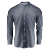 Chemise en coton/lin mélangé, col Mao et manchettes ajustables. Boutons aspect nacré. Tissu contrasté à l'intérieur du col et des poignets.