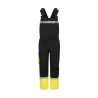 Salopette avec bretelles élastiques ajustables avec boucles à l'avant - Fermeture éclair YKK Natulon - Poches latérales + arrière, côté gauche avec rabat et fermeture aimantée - Poches poitrine pour documents, stylos + poche avec fermeture Velcro - Poches sur les jambes, côté gauche une poche avec rabat et fermeture aimantée, une poche interne pour téléphone et un support pour carte d'identité - Poche sur le côté droit pour mètre pliant et poche pour outils avec bouton pour couteau - Poches genouillères, ouverture extérieure avec fermeture éclair. Genoux préformés, tissu stretch à l'entrejambe. Taille élastique. Renfort Cordura® dans la poche pour mètre pliant, les poches arrière et au-dessus des genoux pour une durabilité accrue. Poche à puce de lavage à la taille. Testé pour le lavage industriel selon la norme ISO 15797. Visibilité améliorée selon EN 17353 Certifié Oeko-Tex 100 Fourni dans un sac biosourcé et compostable