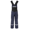 Salopette avec bretelles élastiques ajustables avec boucles à l'avant - Fermeture éclair YKK Natulon - Poches latérales + arrière, côté gauche avec rabat et fermeture aimantée - Poches poitrine pour documents, stylos + poche avec fermeture Velcro - Poches sur les jambes, côté gauche une poche avec rabat et fermeture aimantée, une poche interne pour téléphone et un support pour carte d'identité - Poche sur le côté droit pour mètre pliant et poche pour outils avec bouton pour couteau - Poches genouillères, ouverture extérieure avec fermeture éclair. Genoux préformés, tissu stretch à l'entrejambe. Taille élastique. Renfort Cordura® dans la poche pour mètre pliant, les poches arrière et au-dessus des genoux pour une durabilité accrue. Poche à puce de lavage à la taille. Testé pour le lavage industriel selon la norme ISO 15797. Visibilité améliorée selon EN 17353 Certifié Oeko-Tex 100 Fourni dans un sac biosourcé et compostable