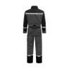 Combinaison avec fermeture à glissière double sens jusqu'au col à l'avant - Fermeture éclair YKK Natulon - La fermeture éclair avant est couverte d'un rabat avec fermeture à pression. Poche poitrine sur le côté droit avec support interne pour fixer la carte d'identité. Poches profondes sur les côtés, également des ouvertures pour accéder aux poches du pantalon sous la combinaison. Poches sur les jambes, côté gauche une poche spacieuse avec rabat et fermeture Velcro ainsi qu'une poche interne pour téléphone. Côté droit, poches pour stylos, papier et mètre pliant. Poches pour protections de genoux, ouverture extérieure avec fermeture éclair. Genoux préformés. Taille élastique. Poches arrière, poche gauche avec rabat et fermeture aimantée. Poignets ajustables avec Velcro. Poche à puce de lavage dans la couture latérale intérieure gauche. Testé pour le lavage industriel selon la norme ISO 15797. Visibilité améliorée selon EN 17353 Certifié Oeko-Tex 100 Fourni dans un sac biosourcé et compostable