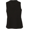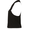 52% coton peigné ring-spun / 48% polyester. Dos nageur. Finitions emmanchures brutes. Coupe courte et fluide.