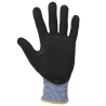 Support tricoté en HPPE, fibre d'acier, basalte, polyester et élasthanne. Jauge 13. Enduction en sandy nitrile sur la paume et les doigts. Renfort entre le pouce et l'index en sandy nitrile. Renforts en PVC sur le dessus de la main et des doigts. Poignet élastiqué avec finition en surjet élastique de couleur variant en fonction de la taille du gant. Produit non lavable. EPI Classe II. Normes NF EN ISO 21420:2020 (Gants de protection - Exigences générales et méthodes d’essai), NF EN 388+A1:2018 (Gants de protection contre les risques mécaniques) : Niveaux de performance 4343FP. Poids d’une paire de gants en taille 10 : 212g