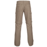100% coton sergé. Lavage aux enzymes. Fermeture zippée avec bouton pression. 4 poches avant et 3 arrière. Bas de pantalon détachable par zip pour une version bermuda. Anneau plastique pour mousqueton à la ceinture. Ce produit a subi un traitement spécial et présente un aspect volontairement vieilli. Ce procédé de fabrication implique des variations de couleurs d'un produit à l'autre et rend chaque pièce unique.