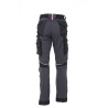 90% nylon / 10% spandex. Pantalon SLIM FIT en tissu U-4 (U-Power 4 cotés stretch) super confortable, doux au toucher, déperlant, respirant et au séchage rapide. Doté de deux amples poches à l’arrière, élastiqué à la taille avec un système innovant de serrage invisible. Bavette à l’arrière pour une meilleure protection lombaire, bandes rétro-réfléchissantes à l’avant et à l’arrière et ruban rouge reflex sur les passants postérieurs. Poche latérale porte-outils, poche latérale multifonction avec porte badge rétractable, deux poches à l’arrière dont une avec patte et une avec fermeture velcro. Deux poches porte-genouillère à ouverture facile par le haut, bas de pantalon entièrement renforcé en polyoxford 600D. Poches zippées cachées sous la grande poche latérale et sous la poche avant droite. Triples coutures. Fermeture centrale par zip YKK et bouton anti-rayure.