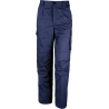 65% polyester / 35% coton. Pantalon coupe-vent. Taille extensible, avec fermeture par bouton et braguette zippée. Coutures articulées aux genoux. Coutures double piqûre renforcées sur les zones sollicitées. Multi poches : larges poches latérales avec finitions réfléchissantes, poche cargo avec fermeture Velcro®, poche pour téléphone portable, poches arrières avec fermeture Velcro®, poche pour mètre, 2 poches latérales profondes, passant porte marteau.