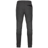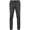 94% polyester / 6% élasthanne (79% polyester / 15% viscose / 6% élasthanne pour coloris chiné). Matière ultra confortable. Ceinture élastiquée avec cordon de serrage bicolore finition embout plastique. 2 poches devant doublure jersey 65% polyester / 35% viscose et 1 poche arrière zippée finition thermosoudée. Coupe moderne et ajustée avec empiècements genoux. Bas de jambes resserré avec une partie élastiquée contrastée Black sur tous les coloris et Dark Grey sur le Ash Heather.