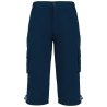 100% polyester. Microfibre toucher peau de pêche. Devant : 2 poches italiennes + 2 poches à soufflet avec rabat sur le côté. Arrière : 2 poches avec fermeture par bande auto-agrippante. Ceinture élastiquée avec bouton et fermeture zippée. Bas de jambes réglable par cordon avec stoppeur.
