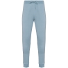 85% coton biologique / 15% polyester recyclé post-consumer. Coton peigné ringspun. Lavé aux enzymes. Molleton gratté 3 fils LSF (Low Shrinkage Fleece). Ceinture en côte 1 x 1 avec cordon de serrage et oeillet boutonnière. Poches latérales et une poche arrière passepoilée. Bord côte 1 x 1 bas de jambes. La couleur Raw Natural se distingue par son aspect brut visuellement texturé, parsemée de fines particules visibles à l’œil nu.