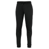 85% coton biologique / 15% polyester recyclé post-consumer. Coton peigné ringspun. Lavé aux enzymes. Molleton gratté 3 fils LSF (Low Shrinkage Fleece). Ceinture en côte 1 x 1 avec cordon de serrage et oeillet boutonnière. Poches latérales et une poche arrière passepoilée. Bord côte 1 x 1 bas de jambes. La couleur Raw Natural se distingue par son aspect brut visuellement texturé, parsemée de fines particules visibles à l’œil nu.