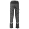 Pantalon de service avec poches latérales italiennes - Fermeture éclair YKK Natulon - Poches sur les jambes, sur le côté gauche une poche spacieuse avec rabat et fermeture aimantée, une poche interne pour téléphone et un support pour fixer la carte d'identité. Sur le côté droit, une poche pour le mètre pliant avec renfort Cordura et une poche pour outils avec bouton à couteau. Genoux préformés, tissu stretch à l'entrejambe. Taille élastique - Boucle de ceinture plus large à l'arrière pour éviter la pression de la ceinture. Bouton dissimulé à l'avant. Poche à puce de lavage à la taille. Testé pour le lavage industriel selon la norme ISO 15797 Visibilité améliorée selon EN 17353 Certifié Oeko-Tex 100 Fourni dans un sac biosourcé et compostable