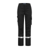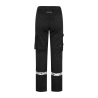 Pantalon de service avec poches latérales italiennes - Fermeture éclair YKK Natulon - Poches sur les jambes, sur le côté gauche une poche spacieuse avec rabat et fermeture aimantée, une poche interne pour téléphone et un support pour fixer la carte d'identité. Sur le côté droit, une poche pour le mètre pliant avec renfort Cordura et une poche pour outils avec bouton à couteau. Genoux préformés, tissu stretch à l'entrejambe. Taille élastique - Boucle de ceinture plus large à l'arrière pour éviter la pression de la ceinture. Bouton dissimulé à l'avant. Poche à puce de lavage à la taille. Testé pour le lavage industriel selon la norme ISO 15797 Visibilité améliorée selon EN 17353 Fourni dans un sac biosourcé et compostable
