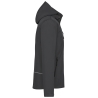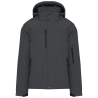 95% polyester / 5% élasthanne. Tissu contrecollé 3 couches respirant 3000 g/m² /24h et imperméable 8000 mm. Extérieur : 95% polyester / 5% élasthanne. Intermédiaire : membrane respirante. Couche intérieure : micropolaire. Doublure matelassée 100% polyester. Devant : 4 poches zippées (2 latérales, 1 sur la manche, 1 poitrine côté droit). 2 poches intérieures avec bouton pression. Capuche amovible 3 panneaux doublée et matelassée, réglable avec stoppeurs. Bas de manche réglable avec bande auto-agrippante. 1 zip côté cœur et 1 zip au bas du vêtement pour accès personnalisation.
