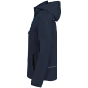 95% polyester / 5% élasthanne. Tissu contrecollé 3 couches respirant 3000 g/m² /24h et imperméable 8000 mm. Extérieur : 95% polyester / 5% élasthanne. Intermédiaire : membrane respirante. Couche intérieure : micropolaire. Doublure matelassée 100% polyester. Devant : 4 poches zippées (2 latérales, 1 sur la manche, 1 poitrine côté droit). 2 poches intérieures avec bouton pression. Capuche amovible 3 panneaux doublée et matelassée, réglable avec stoppeurs. Bas de manche réglable avec bande auto-agrippante. 1 zip côté cœur et 1 zip au bas du vêtement pour accès personnalisation.