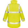 Exterieur: 100% Polyester Oxford avec PU coating. Rembourrage 100% Polyester. Doublure 190T diamond quilted 100% Polyester. EN ISO 20471:2013 Class 3. GO/RT 3279 Issue 8:2013 Class 3 (orange only). 1. Doublure matelassée sans Azo. Fermeture zippée avec rabat à pression. 2 poches avec pression. Poche intérieure. Poche téléphone. Oeillets de ventilations aux aisselles. Capuche détachable. Ouverture dos pour marquage. Bandes 3M™ Scotchlite™ réflectorisantes sur poitrine, dos et manches. Coutures thermocollées. Imperméable.