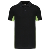 65% polyester / 35% coton. (Black/Dark Grey ; Forest Green/Black ; Royal Blue/Navy : 65% polyester recyclé / 35% coton). Maille piquée. Col en bord-côte. Patte de boutonnage 3 boutons ton sur ton. Découpes contrastées sur côtés et dessous de manches. Bas de manche non resserré.