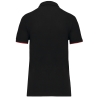 65% polyester / 35% coton. Coton peigné maille piquée. Lavable à 60°C. Traitement antiboulochage. Patte 3 boutons avec bande intérieure contrastée. Col en bord-côte avec bande de propreté. Passepoil contrasté intérieur col et épaules. Finitions bord-côte avec liseré contrasté au bas de manches. Fentes latérales avec bande chevron contrastée pour plus de confort. Finition double aiguille au bas de vêtement. Idéal pour une utilisation quotidienne.