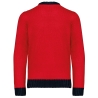 100% acrylique. Coupe ajustée. Jauge 5. Tricot intarsia à motifs de Noël devant. Tricoté en fully fashion : tricoté dans la forme et assemblé sur machine de remaillage. Col rond. Finitions bord côte 2x2 contrastés à l'encolure, poignets et bas de vêtement. Bande propreté ton sur ton avec la couleur majoritaire. Présence d'élasthanne dans le bord côte bas de manche et bas de vêtement pour éviter que le pullover se déforme. Pas d'étiquette de marque au col, uniquement une puce de taille pour faciliter la personnalisation.