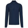 50% coton / 50% acrylique (jauge 12). Coupe ajustée. Col cheminée double épaisseur et fermeture avec zip métal fumé. Bande de propreté à l'encolure.