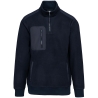 100% polyester recyclé post-consumer. Coupe droite. 2 poches zippées passepoilées en taslan devant avec tire-zip. 1 poche poitrine arrondie zippée avec tire-zip côté droit au porté en taslan avec surpiqûres ton sur ton. Col doublé avec côte 2 x 2 et zip en plastique recyclé + lien d'accrochage intérieur col. Empiècements de renfort épaules et avant bras en taslan. Bord-côtes tubulaire en rib 2 x 2 aux bas de manches et de vêtement. Etiquette de marque détachable.
