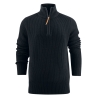 Pull camionneur en maille jersey. Fermeture éclair demi-zip avec tire-zip en cuir. Coudières lisses tricotées jersey. Bord-côte au col, aux poignets et au bas du pull. 50% coton 50% acrylique