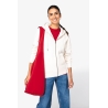 Extérieur : 85% coton biologique. 15% polyester recyclé post-consumer. Doublure : 75% coton recyclé pre-consumer / 22% polyester recyclé post-consumer / 3% autres fibres. ONE SIZE (36 x 55 x 85cm). Capacité : 25L. Coton peigné. Molleton gratté 3 fils LSF (Low Shrinkage Fleece : molleton pré-réteci). Lavé aux enzymes. Doublé avec poche intérieure zippée et zip pour la personnalisation en nylon recyclé. Fermeture par boutons aimantés.