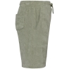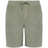 80% coton biologique / 20% polyester recyclé post-consumer. Fabriqué au Portugal. Coton peigné. Matière éponge. Lavé aux enzymes. Ceinture en matière principale avec taille élastiquée. Cordon de serrage à la taille avec embout en silicone ton sur ton. Fausse braguette fantaisie. Deux poches latérales à l'avant avec double surpiqûre à l'ouverture de poche. Poche plaquée dos, côté droit au porté. Ourlet double surpiqûre bas de vêtement.