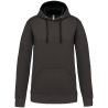 80% coton / 20% polyester. Coton peigné. Molleton gratté. Passe-fil écouteurs dans la poche kangourou et encolure. Finitions bord-côte aux poignets et bas du vêtement. Capuche doublée et contrastée avec cordon de serrage.