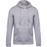 80% coton / 20% polyester. Coton peigné. Molleton gratté. Manches montées. Fermeture zippée nylon. Capuche doublée avec cordon de serrage ton sur ton. Poches Kangourou. Finition bord-côte bas de manches et de vêtement.