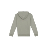 85% coton biologique / 15% polyester recyclé post-consumer. Coton peigné ringspun. Coupe ajustée. Lavé aux enzymes. Molleton gratté 3 fils LSF (Low Shrinkage Fleece : molleton pré-rétréci). 1/2 lune au dos. Poche kangourou. Bord cote 1 x 1 bas de vêtement et bas de manches. Double surpiqûre bas de manches, emmanchures, bas de vêtement et 1/2 lune. Bande de propreté intérieur encolure dos. Capuche doublée en matière principale avec point d’arrêt cordon. Cordon rond avec embouts et oeillets en métal recyclé. La couleur Raw Natural se distingue par son aspect brut visuellement texturé, parsemée de fines particules visibles à l’œil nu.