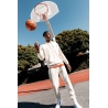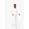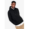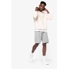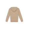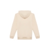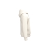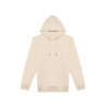85% coton biologique / 15% polyester recyclé post-consumer. Coton peigné ringspun. Coupe ajustée. Lavé aux enzymes. Molleton gratté 3 fils LSF (Low Shrinkage Fleece : molleton pré-rétréci). 1/2 lune au dos. Poche kangourou. Bord cote 1 x 1 bas de vêtement et bas de manches. Double surpiqûre bas de manches, emmanchures, bas de vêtement et 1/2 lune. Bande de propreté intérieur encolure dos. Capuche doublée en matière principale avec point d’arrêt cordon. Cordon rond avec embouts et oeillets en métal recyclé. La couleur Raw Natural se distingue par son aspect brut visuellement texturé, parsemée de fines particules visibles à l’œil nu.